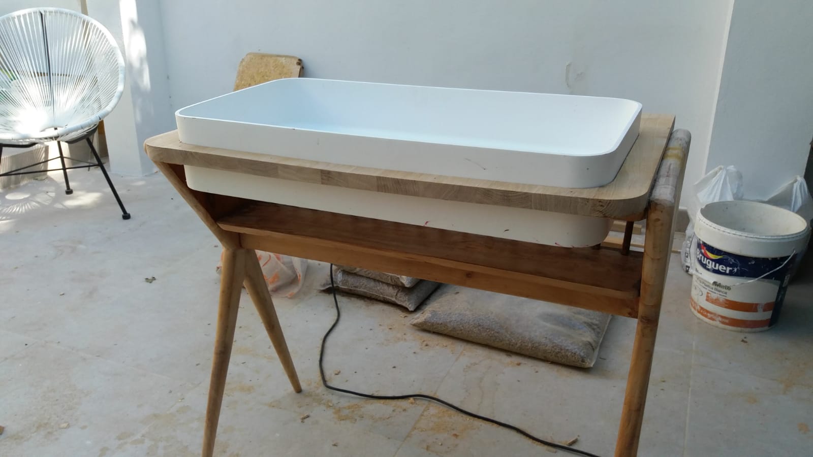 Fabricación de muebles de baño en madera natural barnizada de fórmica o lacado.